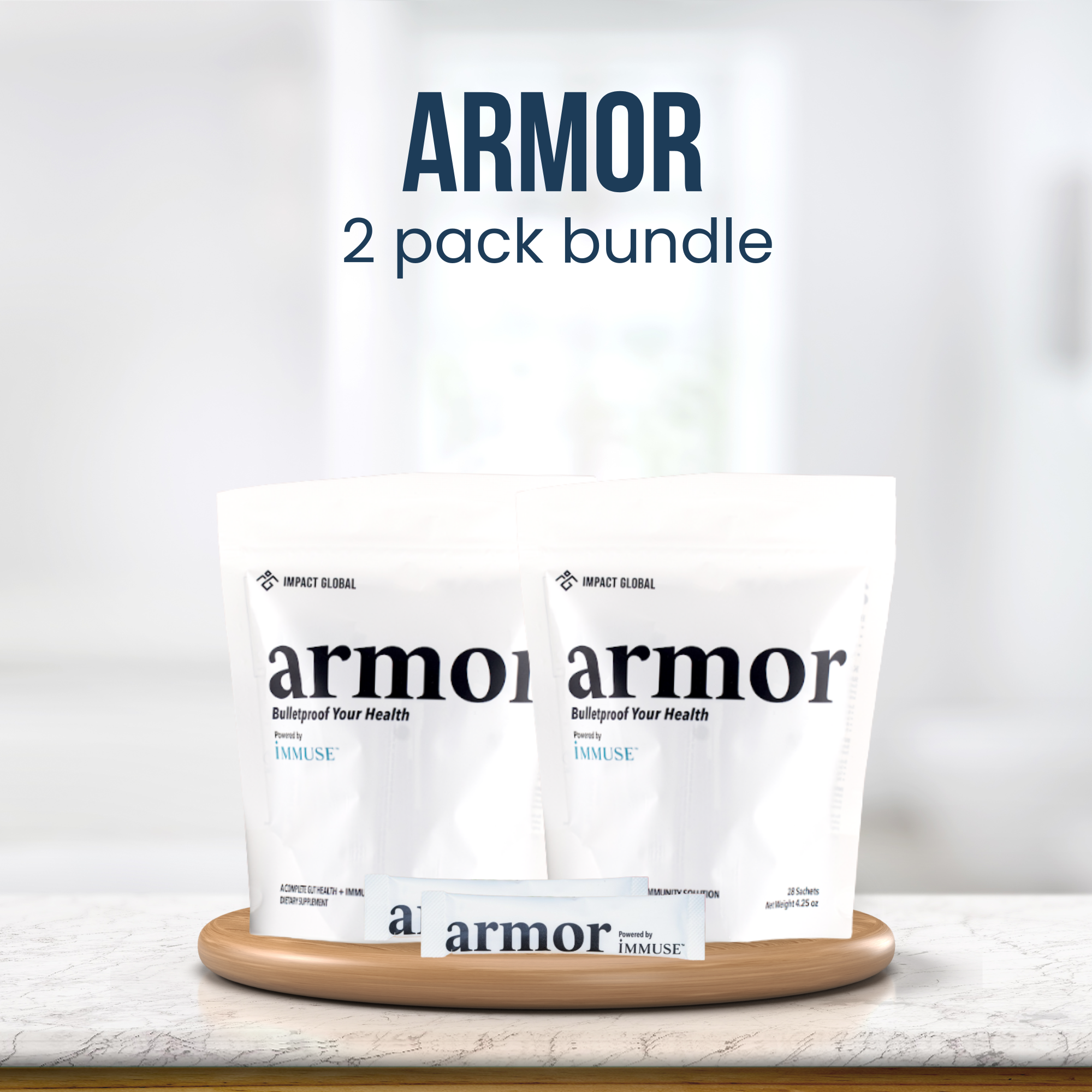 Includes: 2 Armor - Bulletproof Your Health - 2 x 28 Day Supply Free Shipping & Handling Included Benefits of Armor -Immune System Boost -Year-Round Defense -Gut Microbiome Balance -Improved Nutrient Absorption -Respiratory Health -Digestive Health Optimization -Weight Management Support *These statements have not been approved by the Food and Drug Administration. This product is not intended to diagnose, treat, cure, and prevent any disease. Note: This is a subscription product. By subscribing, you agree to the Purchase Terms & Conditions. You understand that the payment is non-refundable once processed and that you must cancel at least three (3) days before the next billing date to avoid being charged.